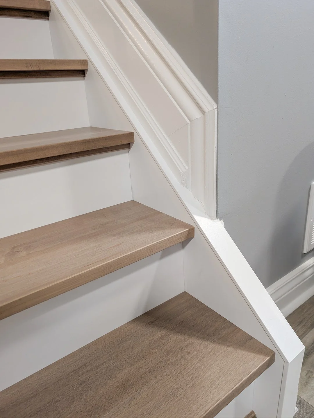 A Stair Recap: We keep the "bones" of your existing staircase and meticulously fit new, solid hardwood treads over the original structure. It results in a staircase that looks and feels like a brand-new solid wood build, but without the mess and structural cost of a demolition.